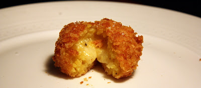 Crunch through the breadcrumbs you’re met with soft flavour-full rice and at its centre deliciously creamy and tangy cheese.  They make a perfect starter or nibble to go with your cold Peroni.